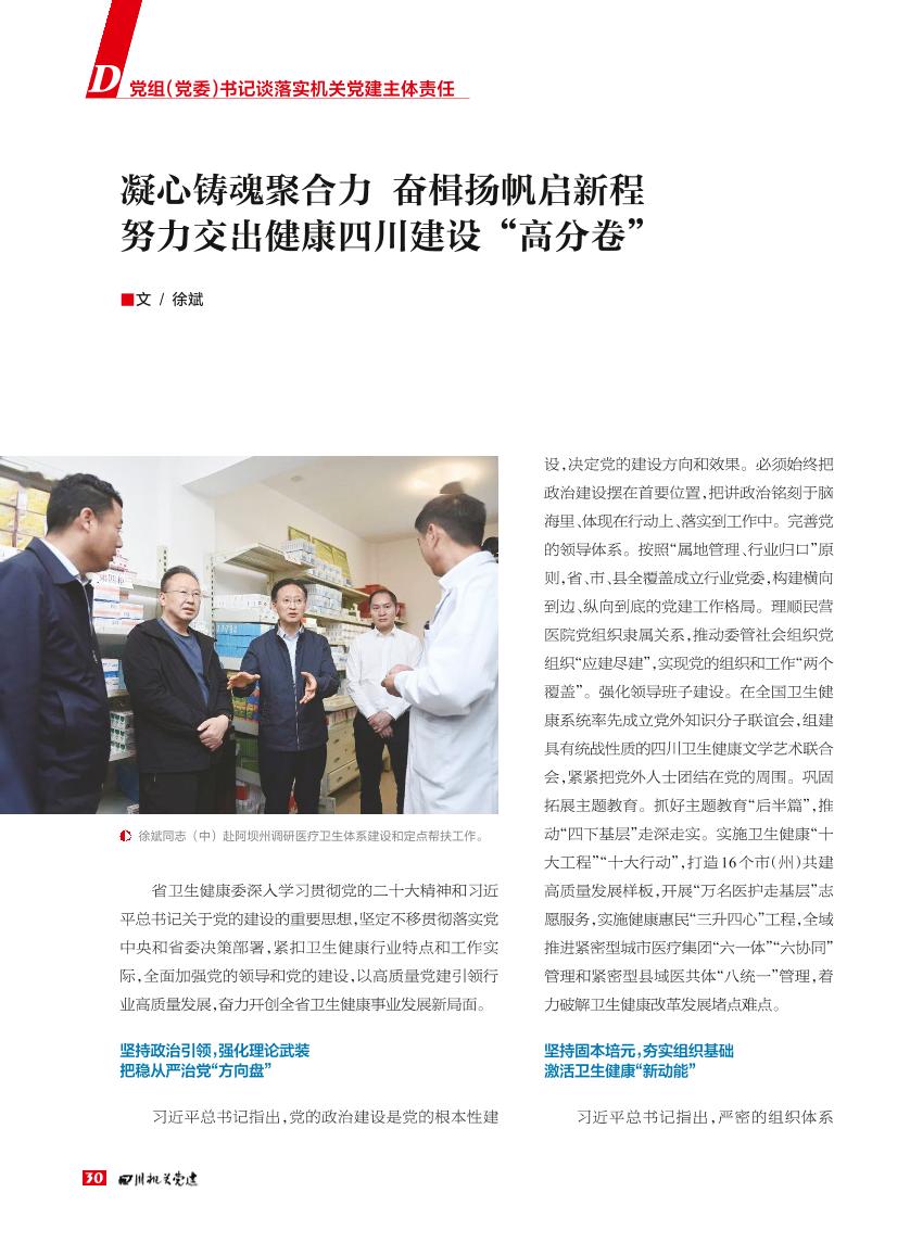 凝心铸魂聚合力 奋楫扬帆启新程 努力交出健康四川建设“高分卷”
