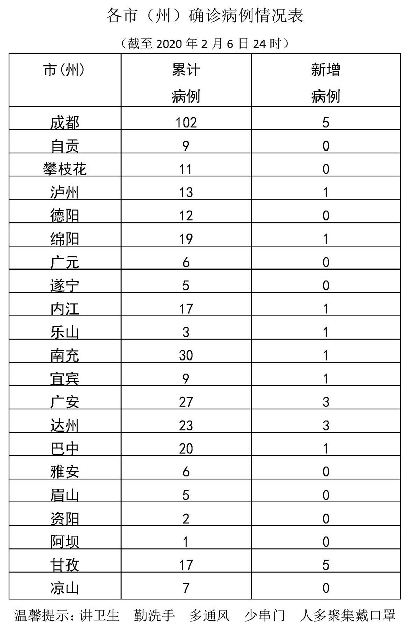 新增治愈出院病例中,成都市6例、达州市3例、遂宁市1例。