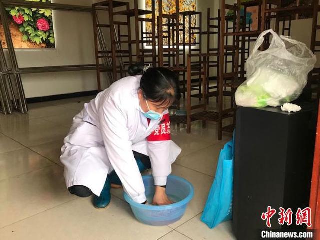 一身白大褂、一个口罩、一副手套、一双长筒靴是李梅霞简单的“防护”装备。“我每天上门给群众测量体温,都是自己走路,村上同事主动要送我我都没答应,我每天接触的人多,怕影响他们的安全。”李梅霞说着,来到村委会为她专门设置的“消毒间”,脱下一身“装备”,给自己消毒完后,才敢走进办公室,开始进行她村上的日常工作。