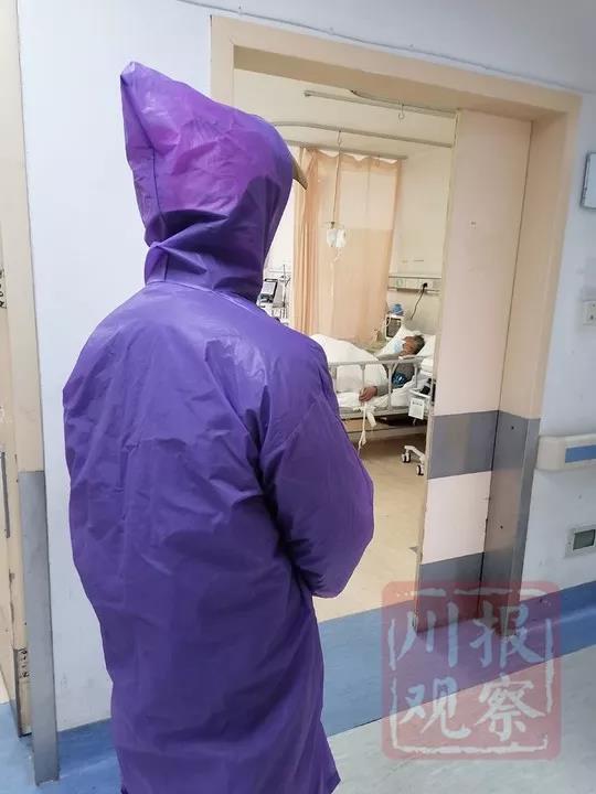眼前这位令人感动的男子,进入病房时是一身特别的防护打扮:穿着雨衣,戴着一顶摩托车头盔,再加一双胶手套和一副口罩。