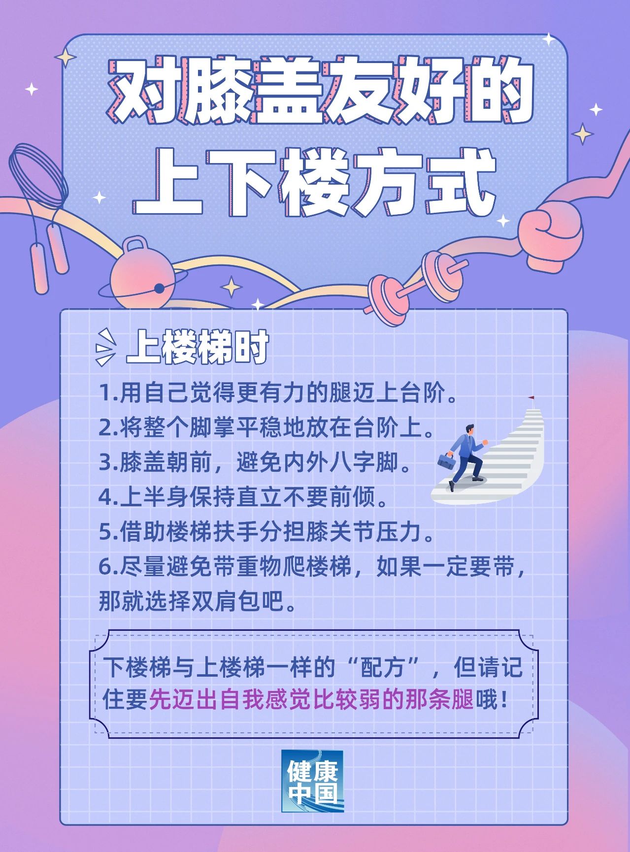 在上下楼梯时,人体重心越往前,膝关节受到的压力越大。长此以往,较大的膝关节压力就可能导致膝关节软骨磨损、软组织发炎,引起疼痛。