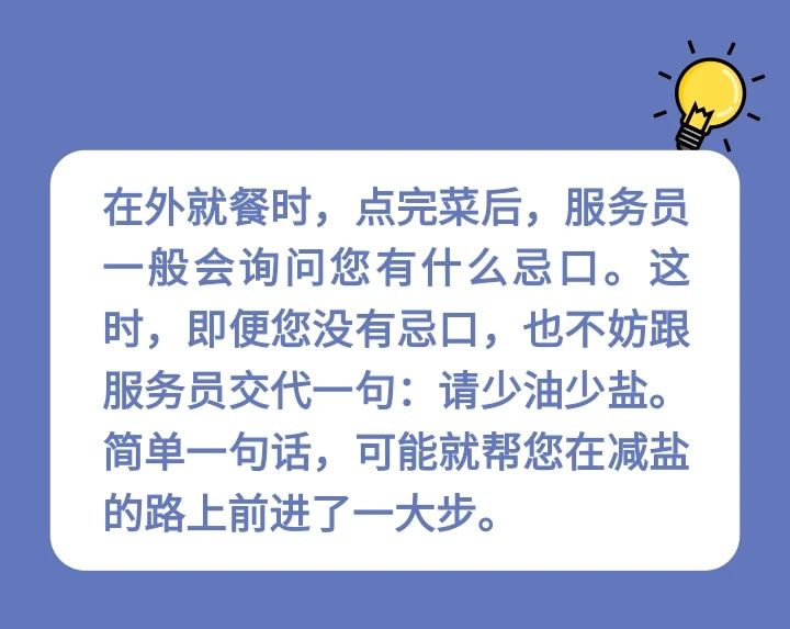 还有一个小技巧:在食堂用餐是大多数上班族的选择,开吃前用热水把菜肴涮一遍,弃掉汤汁,也能有效减少餐食里的钠盐。