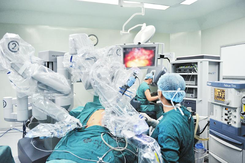 省医科院·省医院达芬奇手术机器人正在做手术。