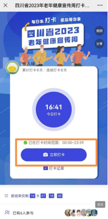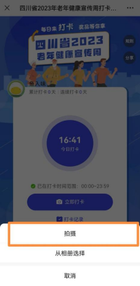 (一)扫描二维码进入活动界面,点击“立即打卡”,拍照记录当下的运动时刻。