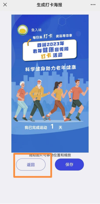 (二)生成海报后点击保存,点击返回,即可成功参与打卡。