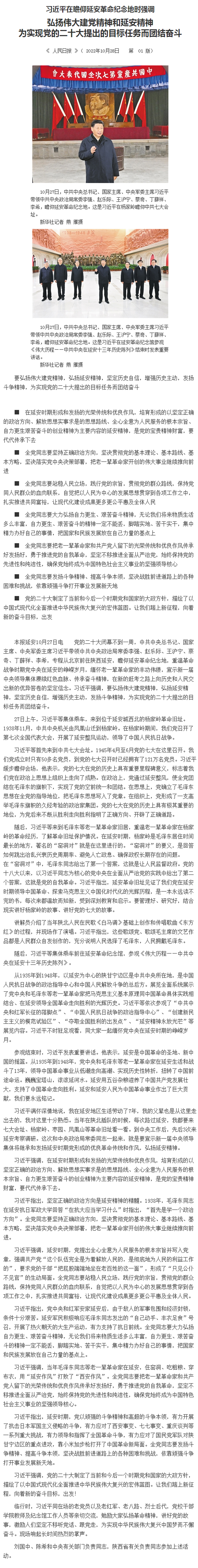 弘扬伟大建党精神和延安精神为实现党的二十大提出的目标任务而团结奋斗