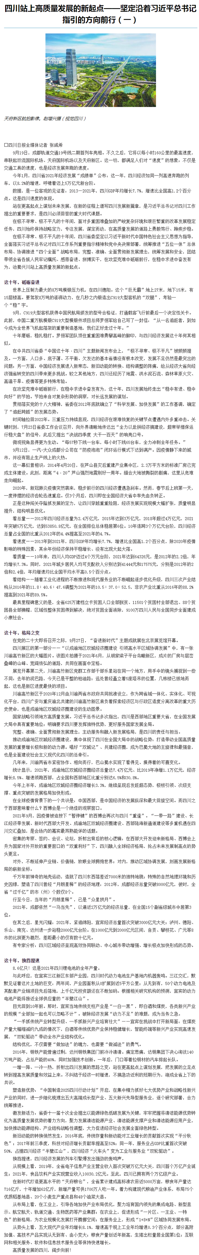 四川站上高质量发展的新起点——坚定沿着习近平总书记指引的方向前行(一)