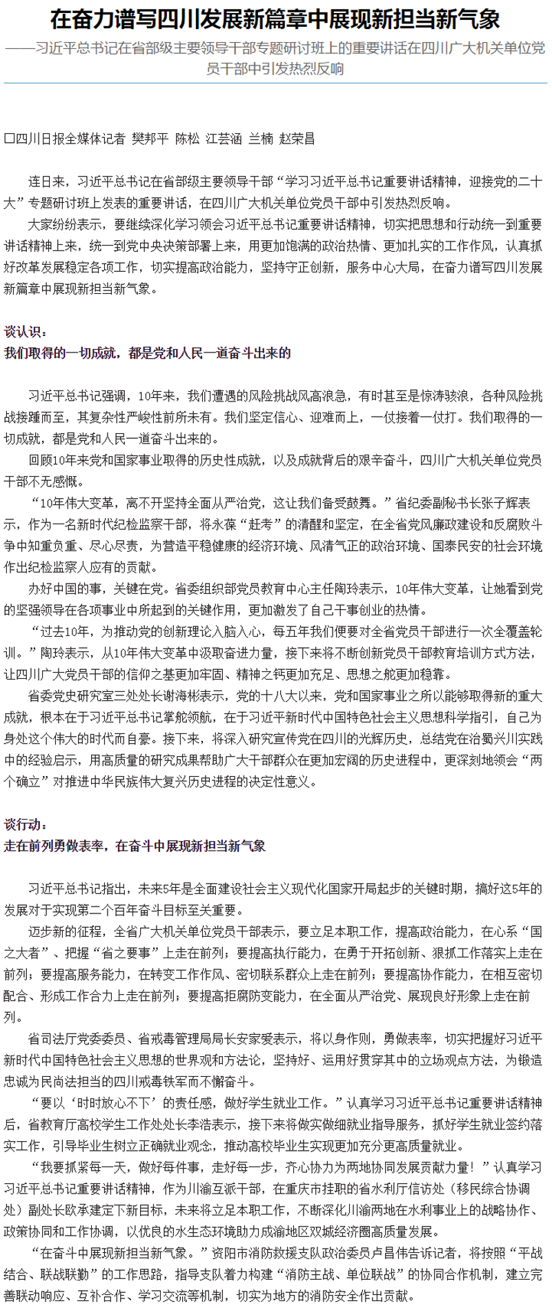 在奋力谱写四川发展新篇章中展现新担当新气象
