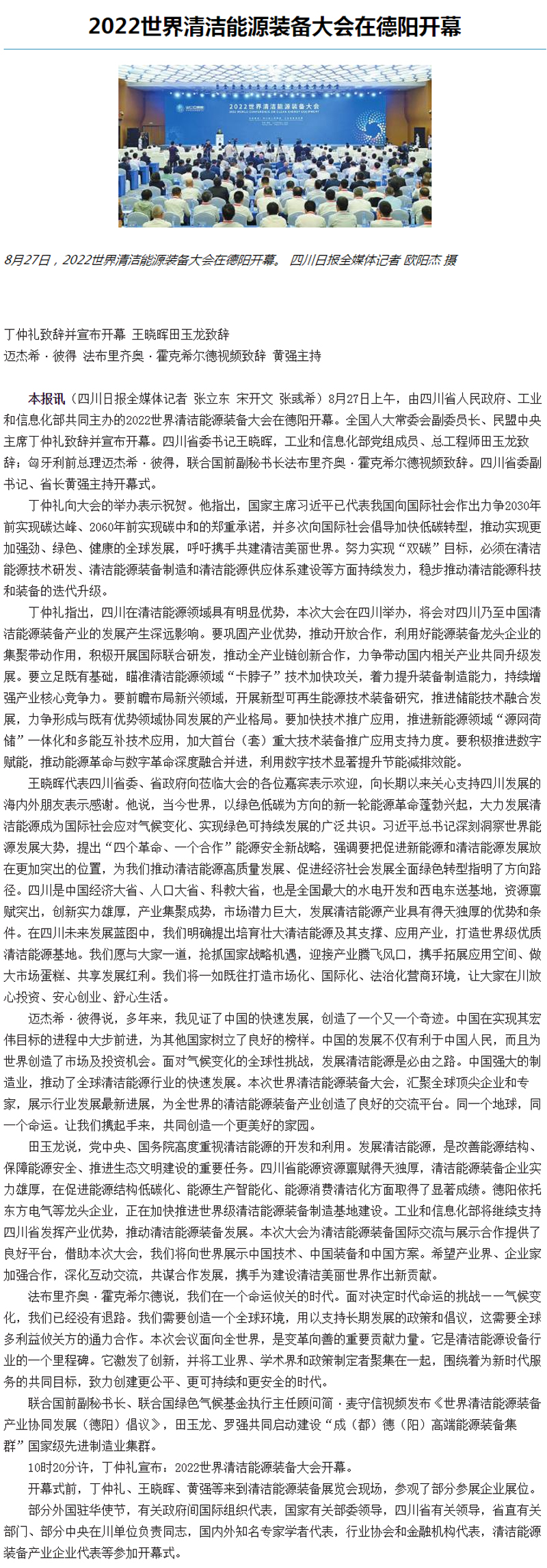2022世界清洁能源装备大会在德阳开幕