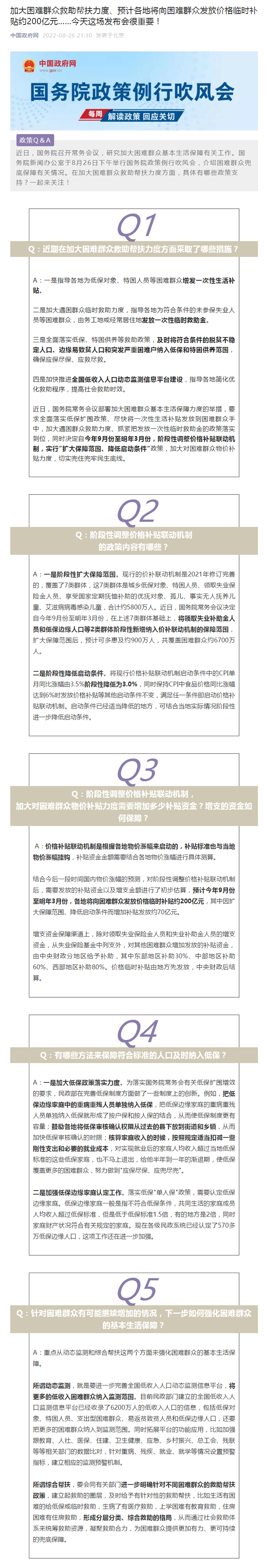 加大困难群众救助帮扶力度、预计各地将向困难群众发放价格临时补贴约200亿元……今天这场发布会很重要!