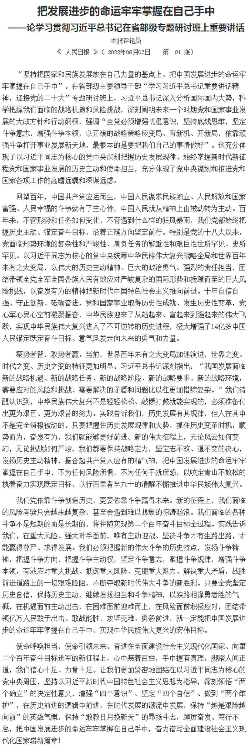 把发展进步的命运牢牢掌握在自己手中