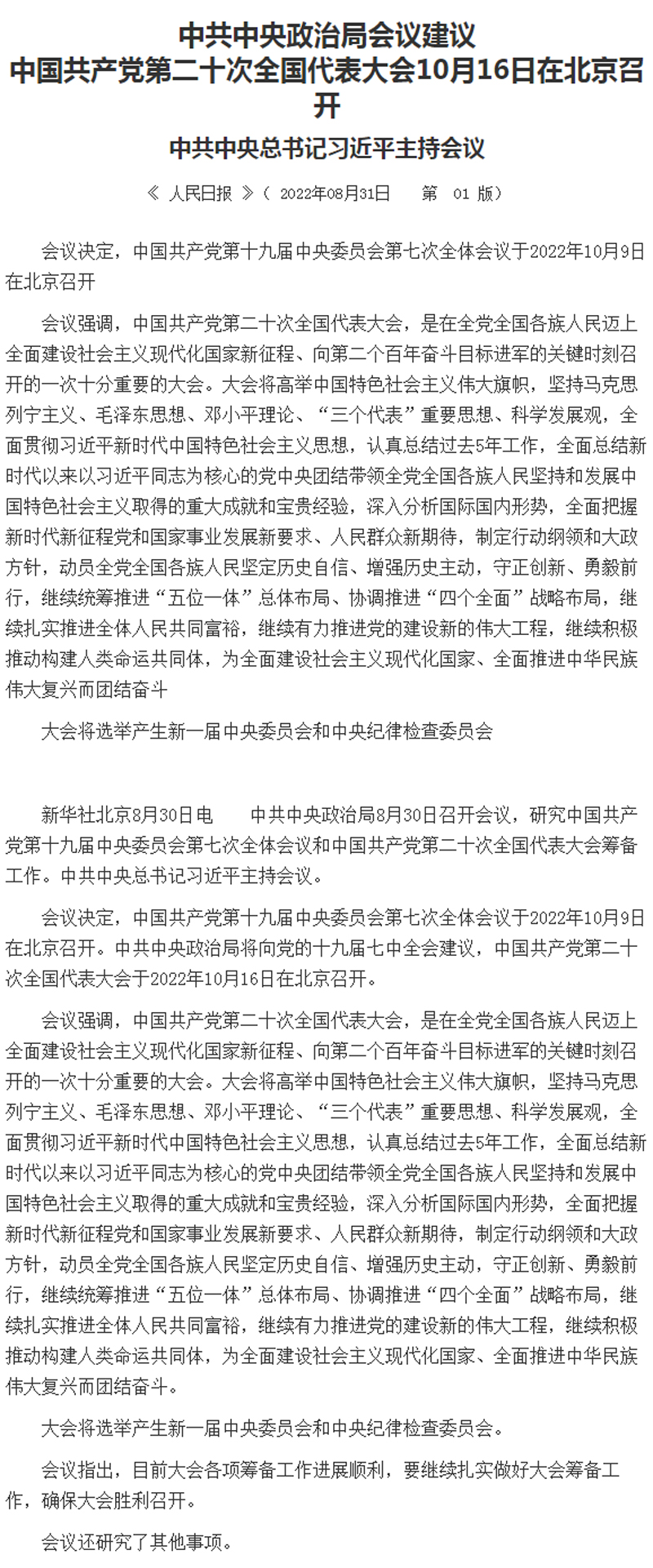 中共中央政治局会议建议