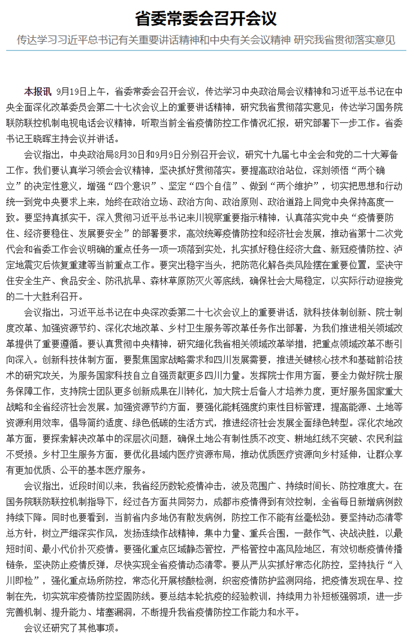 省委常委会召开会议传达学习习近平总书记有关重要讲话精神和中央有关会议精神 研究我省贯彻落实意见