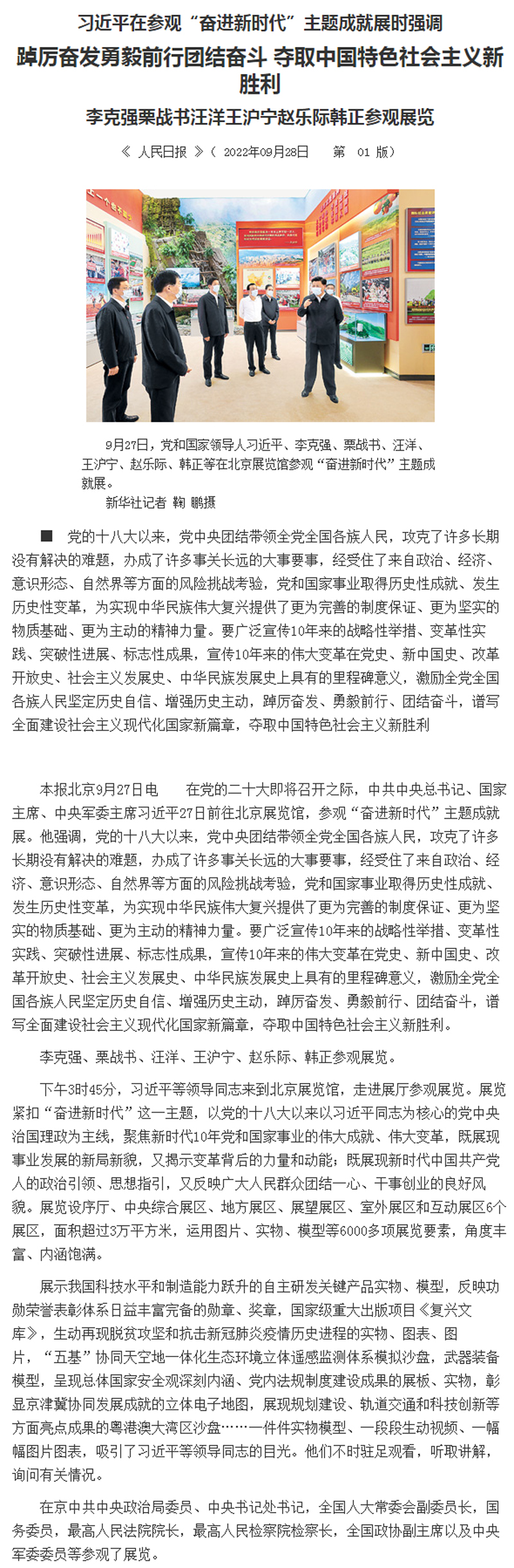 在参观“奋进新时代”主题成就展时强调:踔厉奋发勇毅前行团结奋斗 夺取中国特色社会主义新胜利