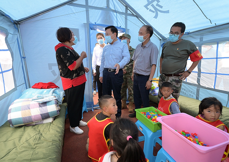 9月6日,省委书记王晓晖前往“9·5”泸定地震受灾严重的雅安市石棉县,实地了解灾情,看望慰问受灾群众。在新民藏族彝族乡海耳村应急避难安置点,王晓晖走进安置帐篷与受灾群众亲切交谈,了解他们的生活保障情况。