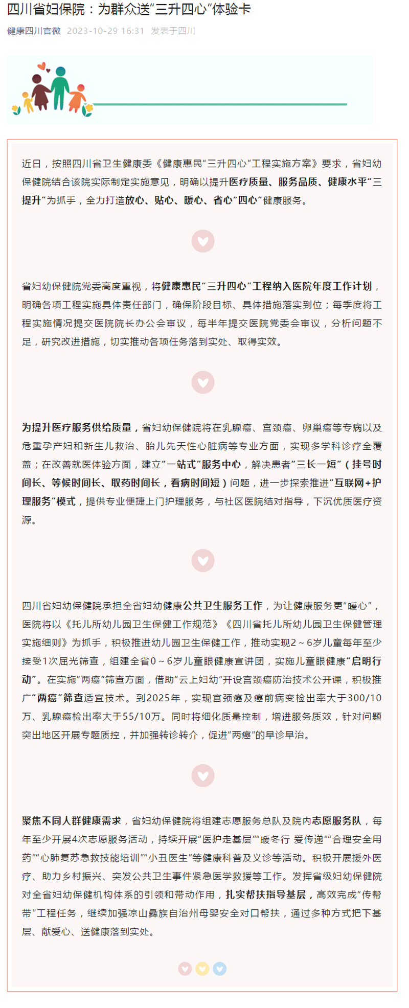 四川省妇保院:为群众送“三升四心”体验卡