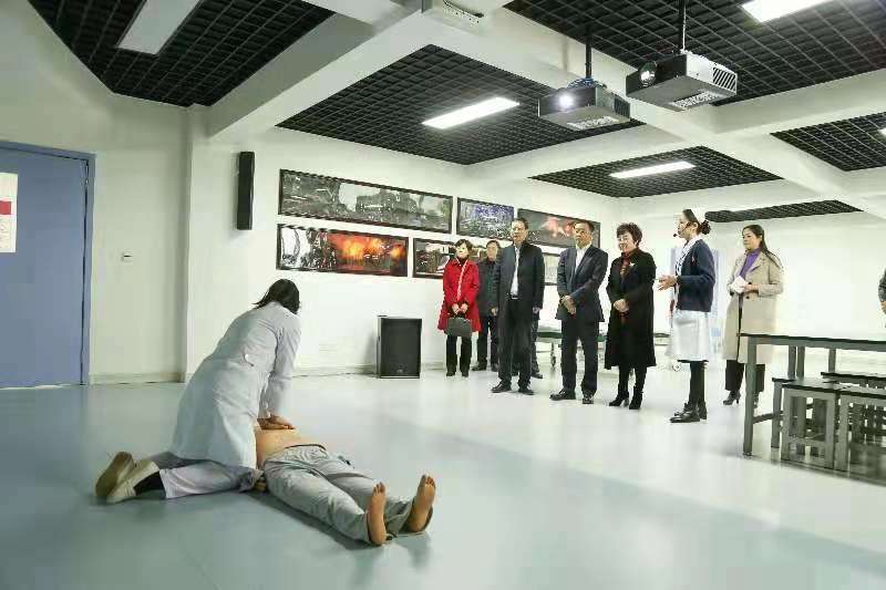 2018年12月4日下午,何延政主任一行深入四川护理职业学院形态学实验中心、创新创业中心、教学督导中心、护理虚拟仿真实训中心和智慧实验室,就四川护理职业学院人才培养、专业建设、师资队伍、信息化、学生管理和新校区建设等工作进行了调研,现场观看灾难场景急救和虚拟静脉穿刺等实训教学,对学院的人才培养工作评估准备情况进行了指导。