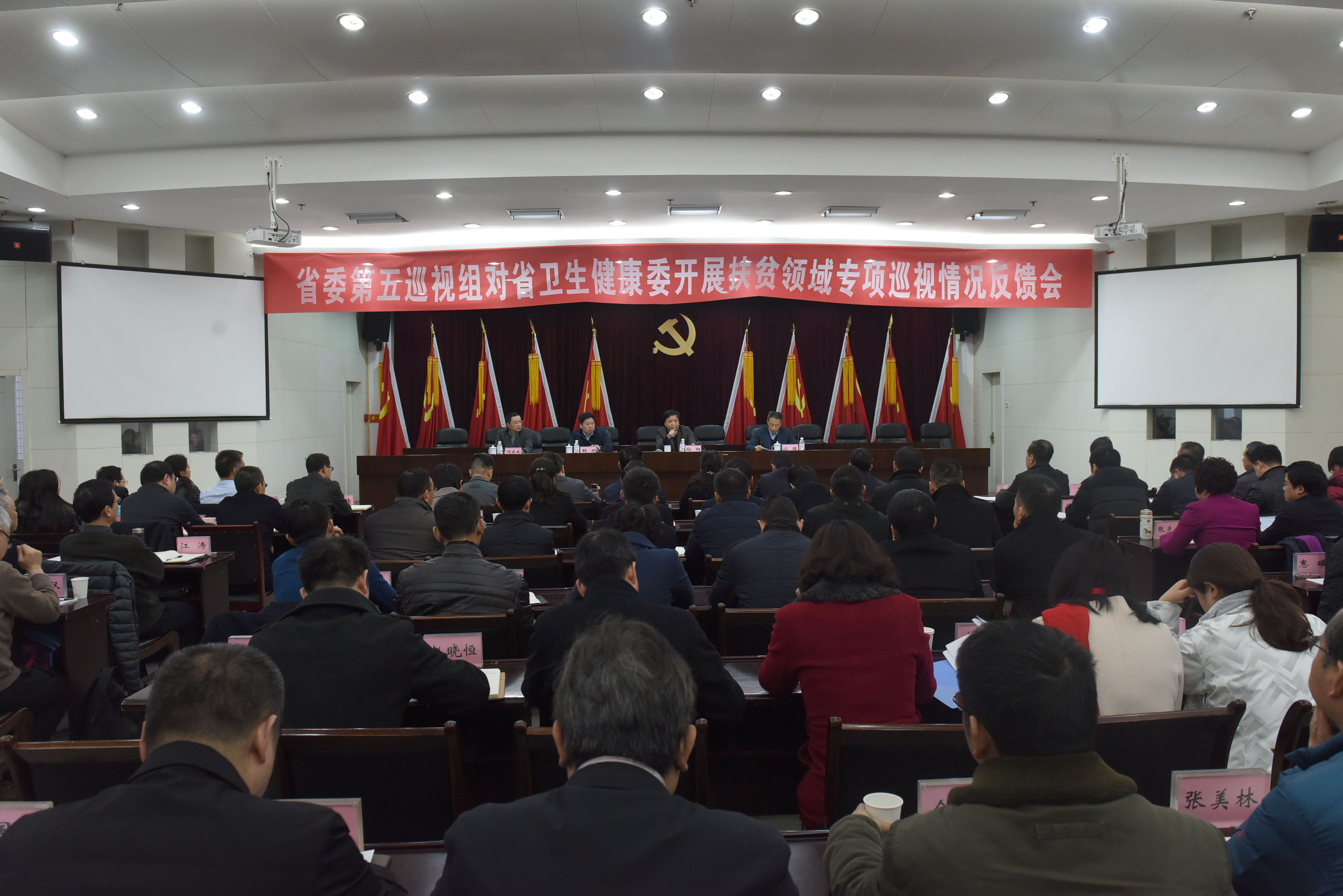 省委第五巡视组副组长及有关同志,韦德体育官网主任何延政,韦德体育官网党组领导班子成员,其他厅级领导干部出席会议;省纪委驻韦德体育官网纪检组负责同志,省中医药局班子全体成员,韦德体育官网、省中医药局直属单位党政主要负责同志,韦德体育官网脱贫攻坚领导小组成员处室主要负责同志列席会议。